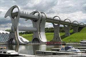 隨著科技的發(fā)展,許多技術與藝術的結合品一件件誕生。其中一個就位于英國,稱為世界十大升降機之一。佛斯與克萊德運河動工于1768年,1777年時她接通了西岸的蘇格蘭第一大城格拉斯哥(Glasgow)與東部佛斯灣(Firth of Forth)的港口城市格蘭茅斯(Grangemouth)。13年后,從格拉斯哥往西到克萊德灣(Firth of Clyde)的水道也完工了。于是,61公里長的佛斯與克萊德運河成了世界上第一條連接兩個海洋的運河航道。1818年到1822年間,51公里長的聯(lián)合運河也建成了。聯(lián)合運河沿著地勢平坦前行的等高線運河。然而,兩條運河在福爾柯克匯合之前,還得克服35米的高度落差。當年工程師們用了11個水閘來解決這問題。
