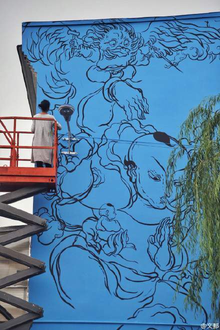 第一次看到用戶在自己家生產(chǎn)的全自行液壓升降機(jī)上畫壁畫有點(diǎn)小激動(dòng),全電瓶行走和升降,沒有支腿,能更好的貼服墻面,給藝術(shù)類學(xué)生提供了很大的方便。