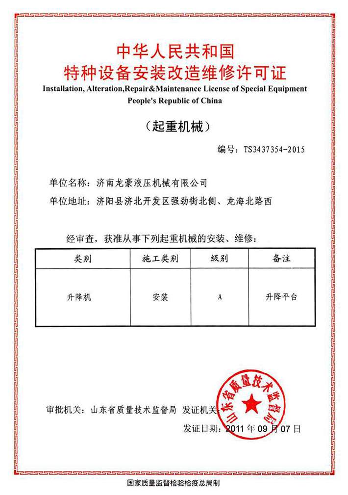 特種設(shè)備安裝改造維修許可證
